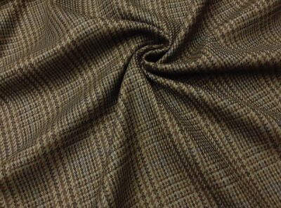 Tessuto prodotto in Scozia in lana merino pied de poule verde e marroneTessuto ad armatura Twill – la più utilizzata nei tessuti di drapperia per le caratteristiche di robustezza e versatilità – prodotto in Scozia in pura lana merino. Ha peso medio, mano calda e morbida, non si stropiccia e non si usura nel tempo. Consigliato per la realizzazione di giacche uomo ma anche per capi spalla femminil e gonne.