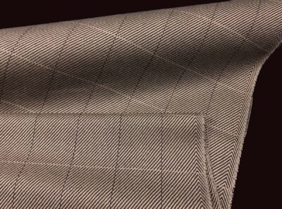 Tessuto in lana merino diagonale e riquadro sui toni del beige e marroneTessuto finestrato ad armatura Twill – la più utilizzata nei tessuti di drapperia per le caratteristiche di robustezza e versatilità – prodotto a Biella in pura lana merino pettinata. Di peso medio-alto, mano morbida, non si stropiccia e non si usura nel tempo. Consigliato per la realizzazione di giacche da uomo ma anche per capi spalla femminili e gonne.
