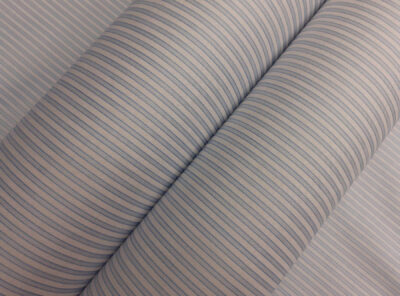 Tessuto per camicie popeline a righe blue su fondo bianco e grigioQuesto tessuto popeline in puro cotone doppio ritorto, è un tessuto leggero, liscio, compatto e allo stesso tempo morbido e setoso al tatto. Si contraddistingue per una notevole resistenza all’usura, al tempo e ai lavaggi. È perfetto per confezionare camicie da uomo e camicie da donna.