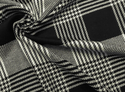 Tessuto in lana merino tipo “Principe di Galles” bianco e neroTessuto ad armatura Twill – la più utilizzata per le caratteristiche di robustezza e versatilità – prodotto a Biella in pura lana merino. Ha peso medio, mano calda e morbida, non si stropiccia e non si usura nel tempo. Consigliato per la realizzazione di capi spalla femminil,abiti e gonne.
