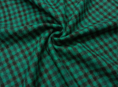 Tessuto in lana a quadretti verde smeraldo e neroTessuto ad armatura Twill – la più utilizzata per le caratteristiche di robustezza e versatilità – prodotto a Biella in pura lana merino. Ha peso medio-alto, mano calda e morbida, non si stropiccia e non si usura nel tempo. Consigliato per la realizzazione di capi spalla femminil e gonne.
