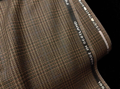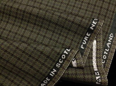 Tessuto prodotto in Scozia in lana merino pied de poule verde e marroneTessuto ad armatura Twill – la più utilizzata nei tessuti di drapperia per le caratteristiche di robustezza e versatilità – prodotto in Scozia in pura lana merino. Ha peso medio, mano calda e morbida, non si stropiccia e non si usura nel tempo. Consigliato per la realizzazione di giacche uomo ma anche per capi spalla femminil e gonne.