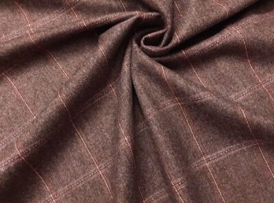 Flanella in lana merino fondo melange bruciato e grigio finestratoQuesta flanella, prodotta dal Lanificio Tallia di Delfino , utilizzando lane merino, ha peso elevato ed è perfetta per realizzare un capo invernale. Calda con piacevole mano e corposità è perfetta per la realizzazione di capi spalla.