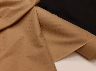 Tessuto per camicie batista “plumetis” beige scuroLa batista è un tessuto molto fine e traspirante. Moderatamente trasparente, leggero, di mano morbida, viene prodotto utilizzando filati di cotone sottili, mercerizzati e ritorti.