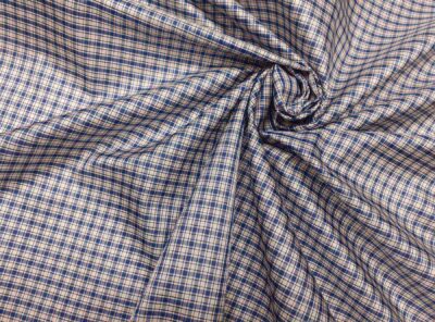 Seta taffetà tinta in filo a quadretti bianco e blu