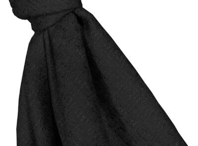 Tessuto Chanel in pura lana neroIn questo tessuto Chanel – con armatura a stuoia – gli effetti di filatura bouclé e frisé sono intrecciati con filati pettinati più resistenti. La mano è morbida e corposa, ideale per la realizzazione di capispalla, abiti e gonne.