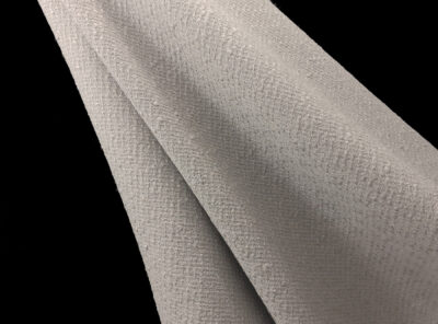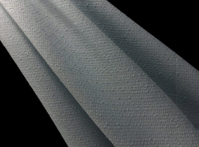 Chanel in pura lana celeste pallidoIn questo tessuto Chanel – con armatura a stuoia – gli effetti di filatura bouclé e frisé sono intrecciati con filati pettinati più resistenti. La mano è morbida e corposa, ideale per la realizzazione di capispalla, abiti e gonne.