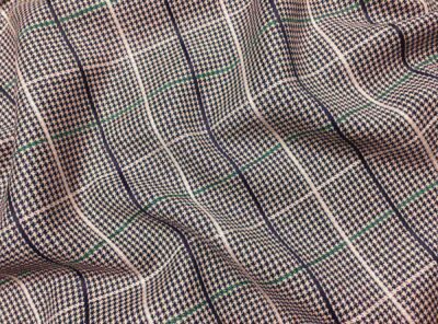 Lana pettinata pied de poule blu con riga verdeTessuto ad armatura Twill – la più utilizzata nei tessuti di drapperia per le caratteristiche di robustezza e versatilità – prodotto a Biella in pura lana merino pettinata. Di peso medio, non si stropiccia e non si usura nel tempo. Consigliato per la realizzazione di capi spalla femminili, pantaloni e gonne.