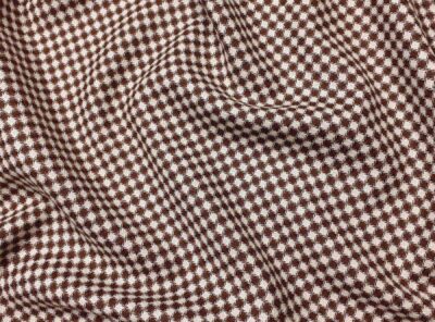 Lana pettinata jaquard a rombi marrone e biancoIn questo tessuto di pura lana pettinata prodotto a Biella, la lavorazione jacquard con il contrasto fra lucido e opaco, crea un piacevole effetto di tridimensionalità. Di peso medio ha mano calda e compatta ed è adatto per realizzare capispalla, pantaloni e gonne.