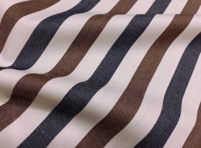 Lana pettinata a righe marrone bianco e bluTessuto ad armatura Twill – la più utilizzata nei tessuti di drapperia per le caratteristiche di robustezza e versatilità – prodotto a Biella in pura lana merino pettinata. Di peso medio-leggero ha mano morbida, non si stropiccia e non si usura nel tempo. Consigliato per la realizzazione di capi spalla femminili, pantaloni e gonne.
