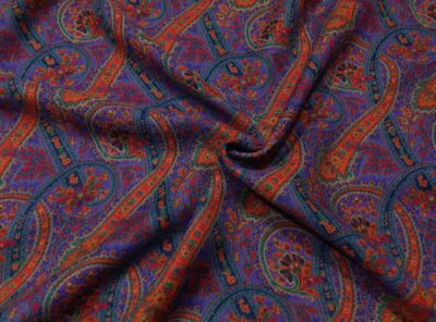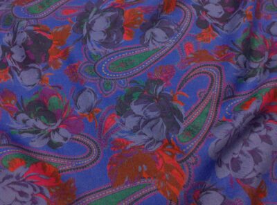 Mussola di lana fantasia cashmere su fondo viola chiaro