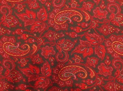 Mussola di lana fantasia cashmere rosso su fondo nero