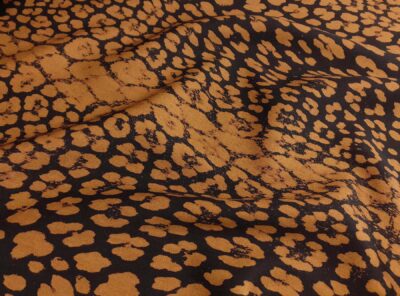 Grain de Poudre lana disegno leopardato nero su fondo cammello scuro
