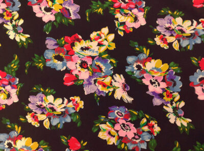 Crepe de Chine in seta fantasia floreale su fondo nero
