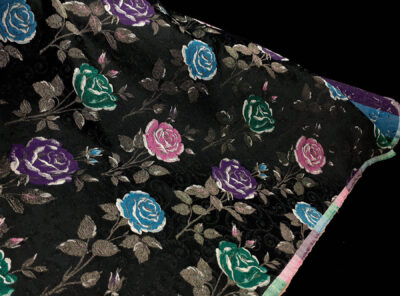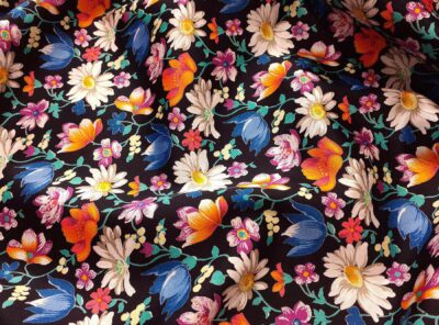 Raso in cotone fantasia floreale fondo nero