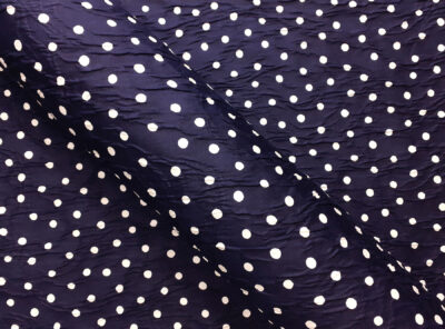 Matelassè in cotone effetto goffrato e jacquard pois bianchi su fondo blue